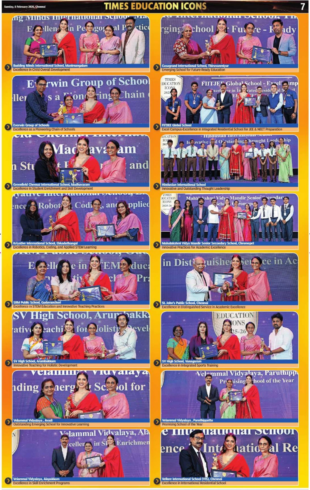 MVM CBSE has been proudly featured in the Times of India, receiving prestigious recognition for its commitment to excellence in education. Our school was honoured by the Times Education Icons 2025–26 with the following accolades: